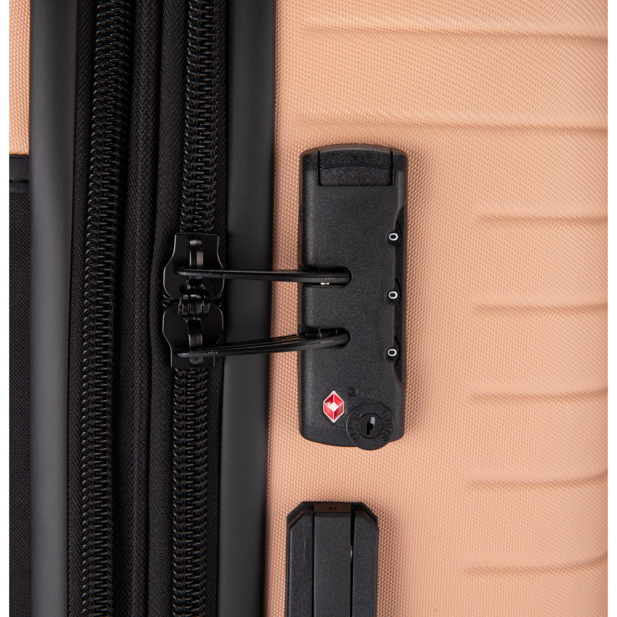 The Attuned Medium Plus case features a strong and durable ABS shell which provides high-resistance protection whilst offering stylish good looks with its unique embossed textured finish. It also comes complete with an in-built Travel Sentry® approved combination lock. The medium plus case features an innovative soft front pocket for easy accessibility.