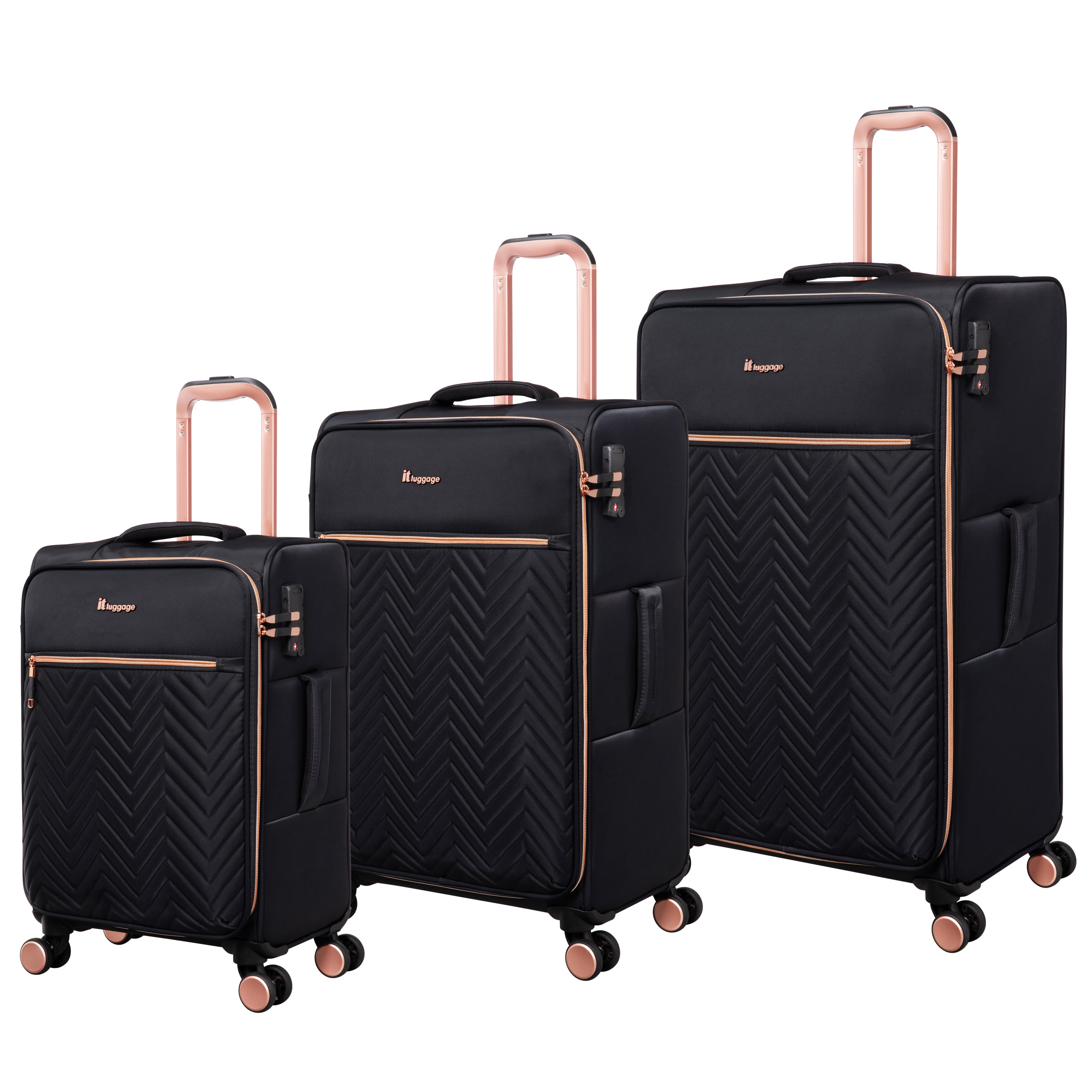 Consisting of large, medium, and cabin cases, the fashionable chevron quilted front panel, along with rose gold components and detailing gives the Bewitching set a luxurious look and feel.