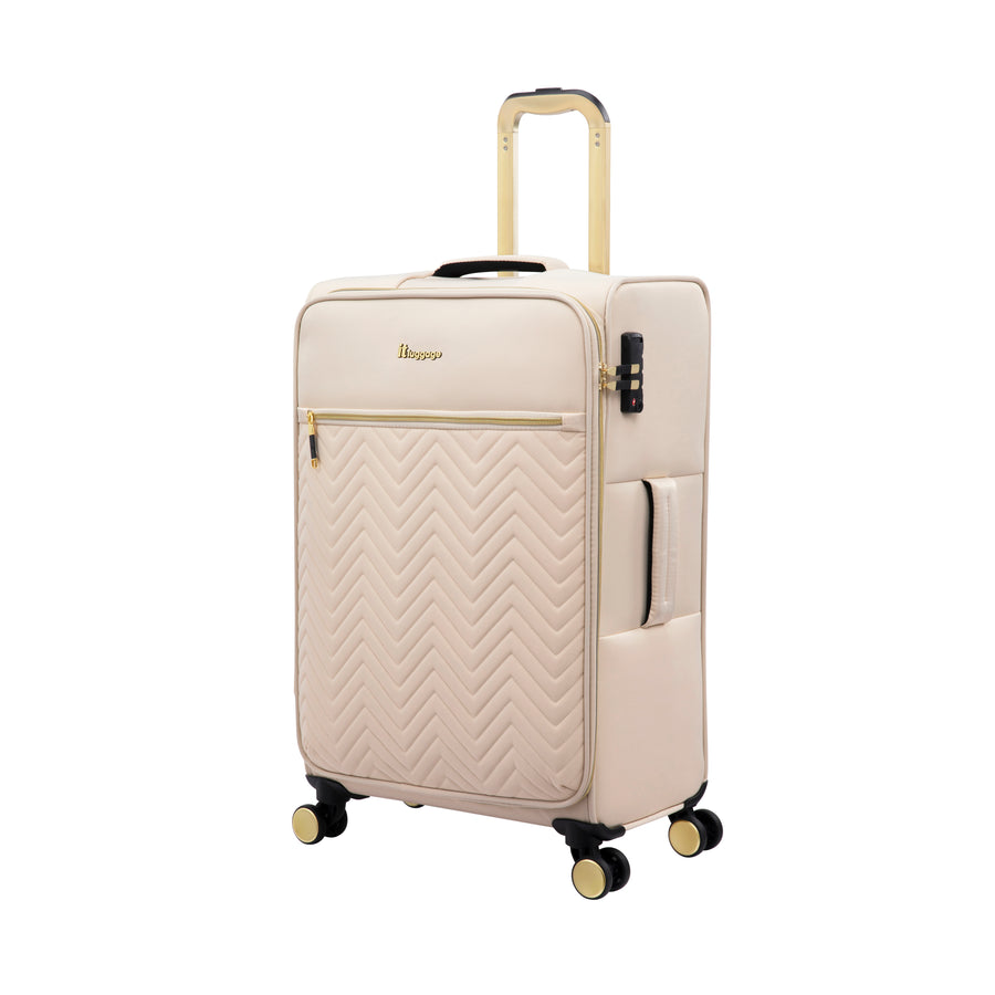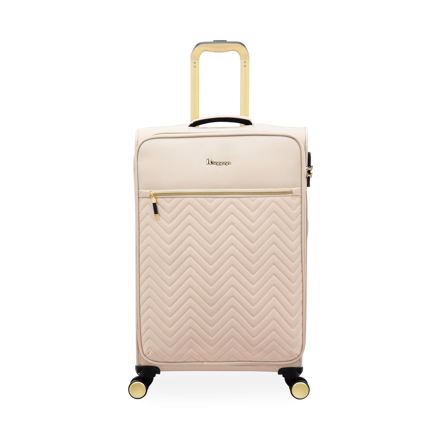 - Fashionable chevron quilted front panel with luxurious rose gold component and detailing