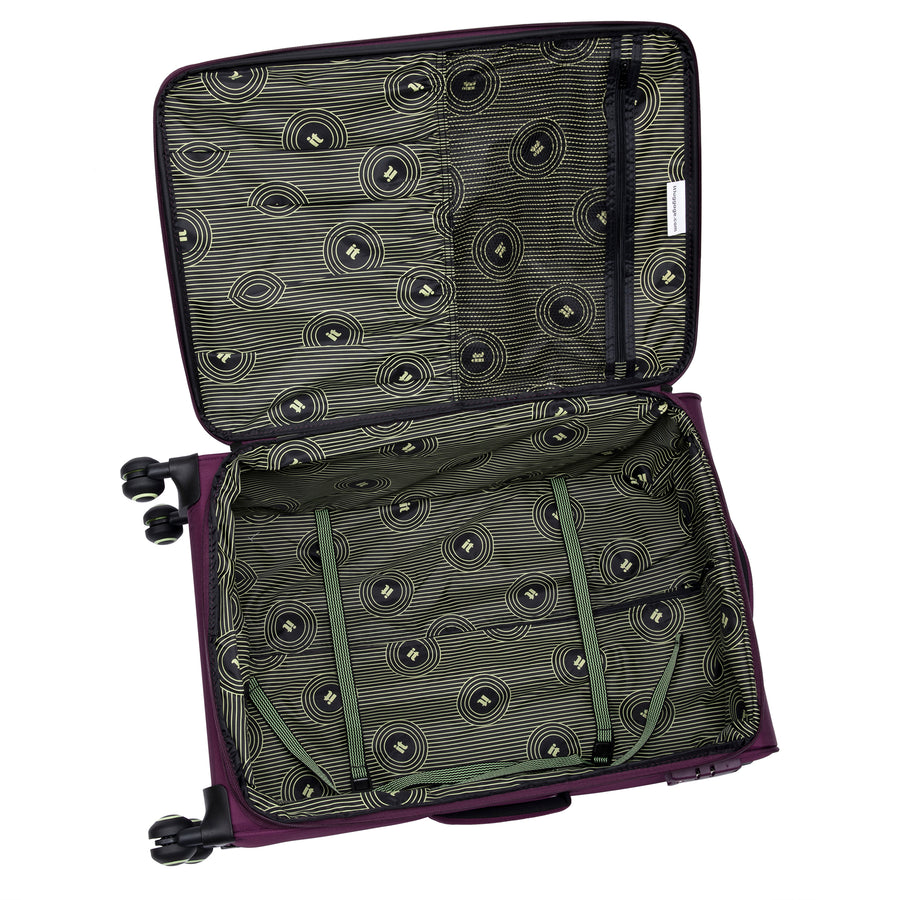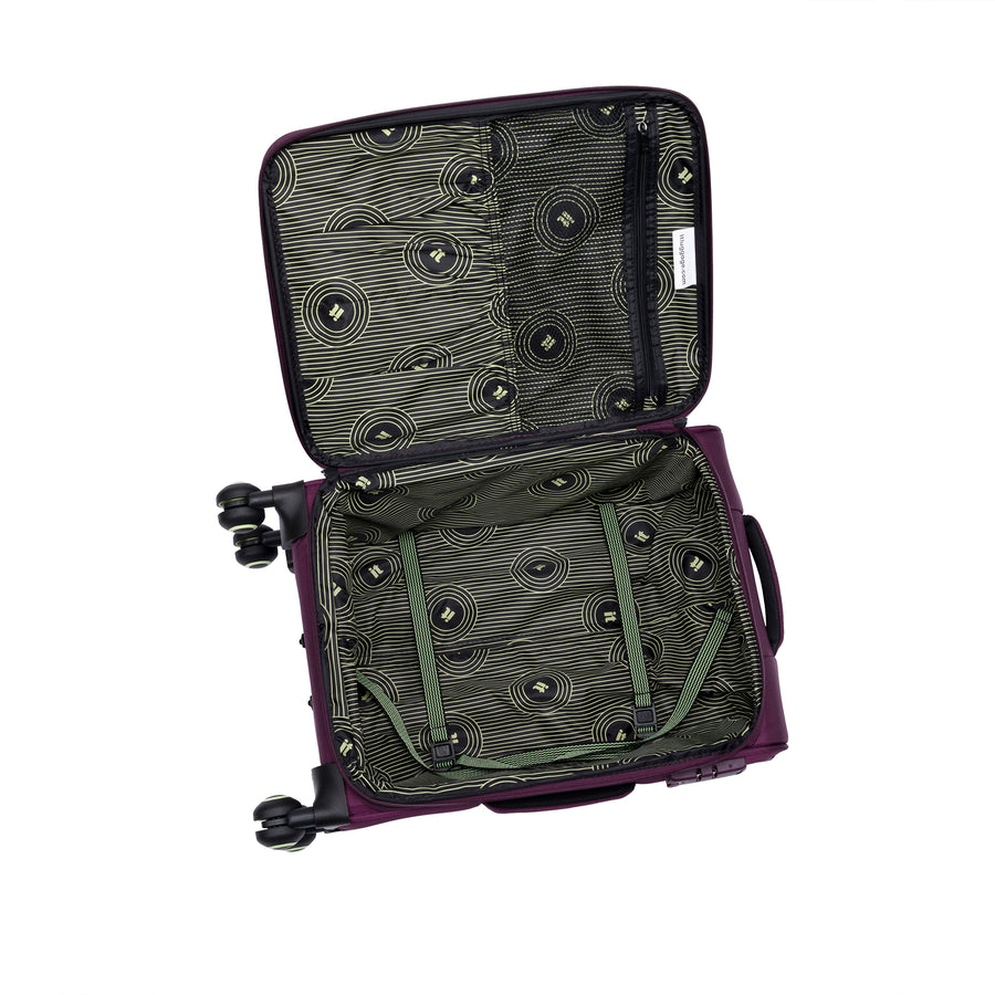 - Infinispin technology for superior wheel system enabling 360 degree balance precision and control exclusive to it luggage