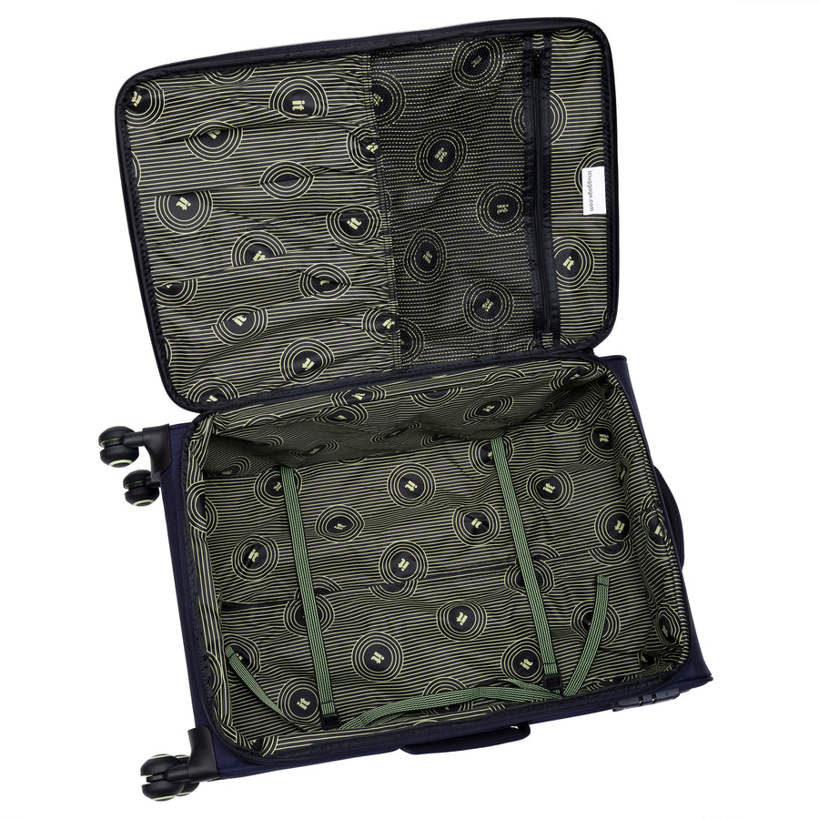 Discover the Circulator large suitcase from our Infinispin collection that includes a range of features which prepares you for any adventure. The 3-piece set consists of large, medium and cabin cases, the fashionable padded front panel, along with black and shadow lime components and detailing gives the Circulator set a bright look and feel.