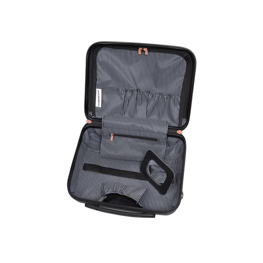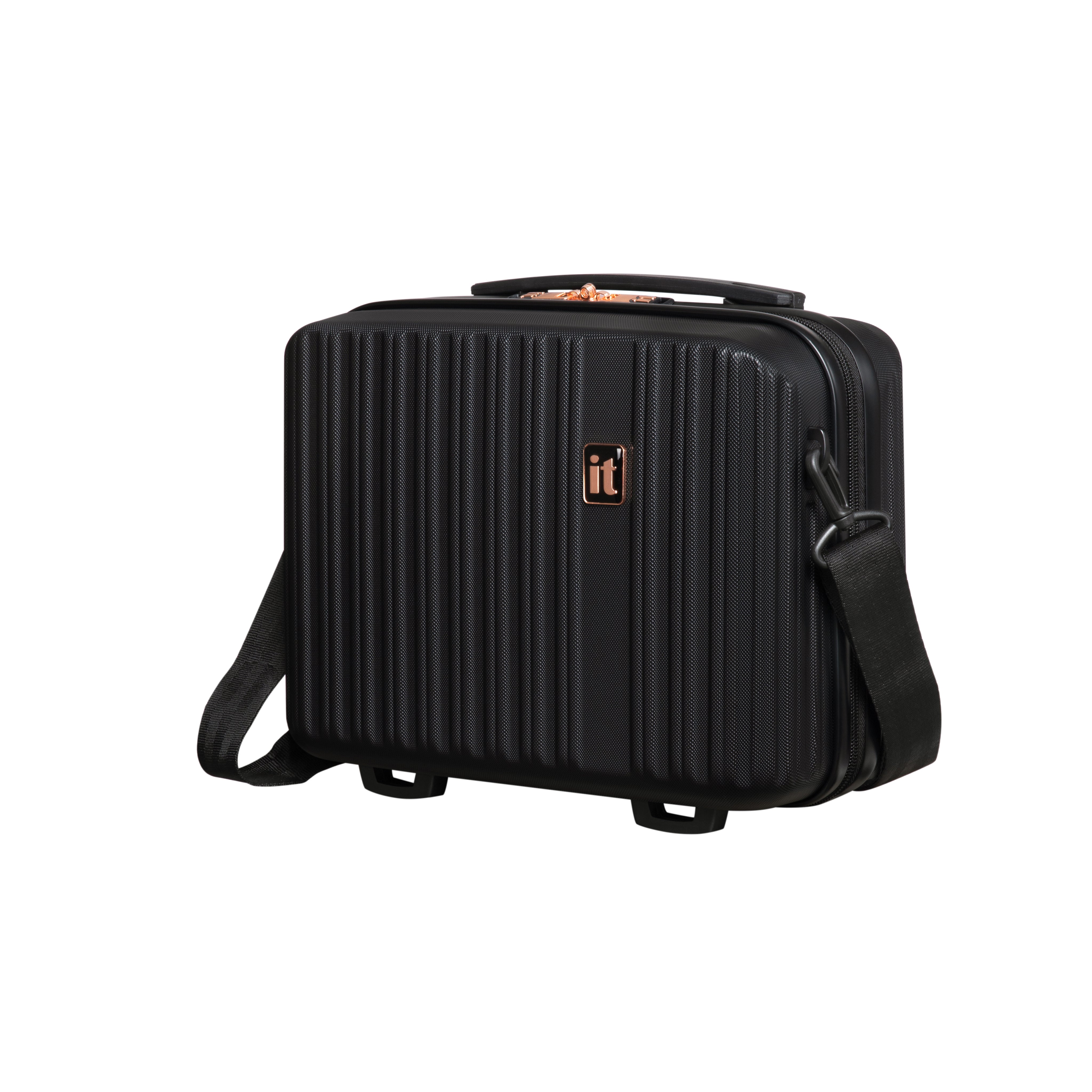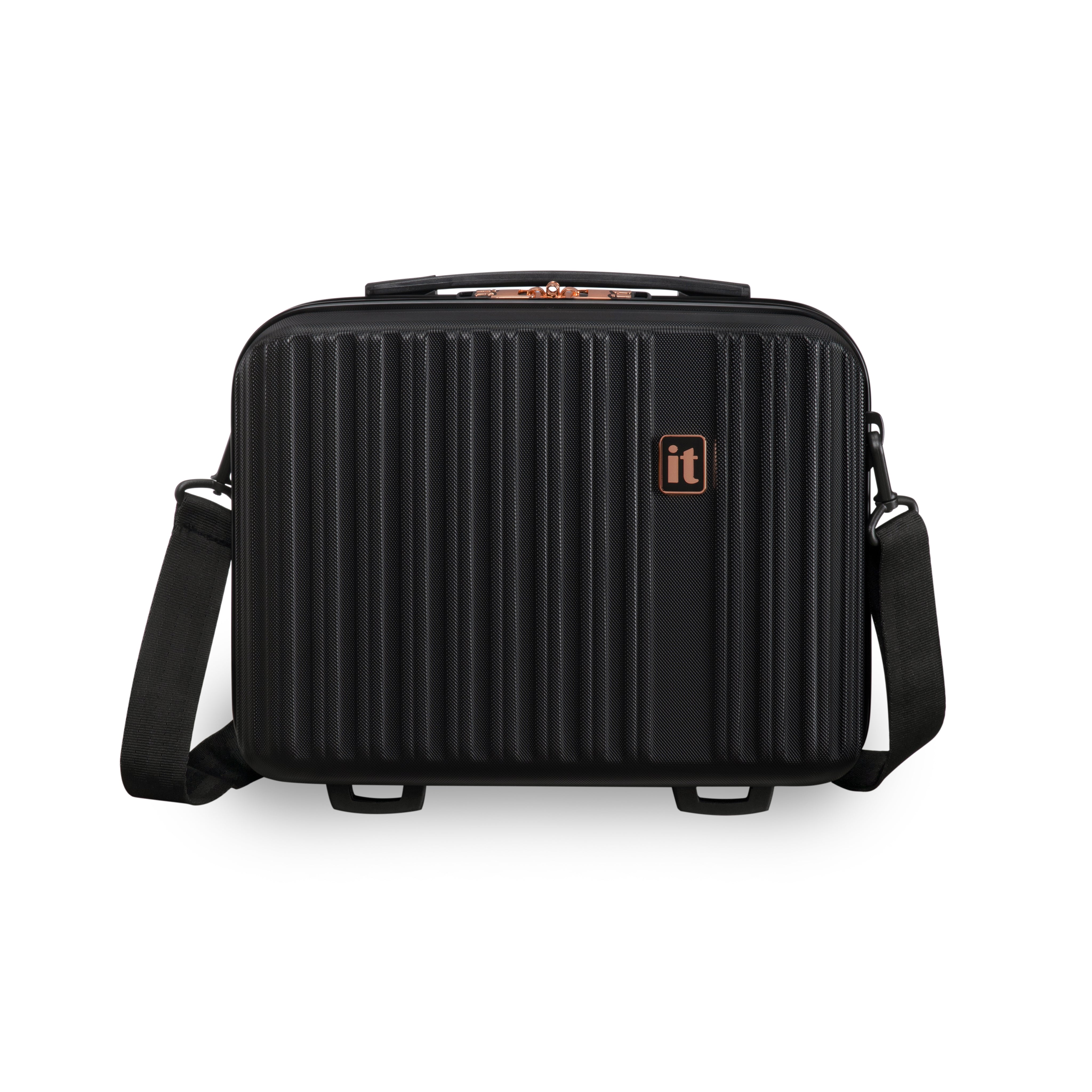 The Luxuriant vanity case has been constructed from strong and durable ABS outer shell with stylish embossed ribbed effect design. Detailed with Luxurious rose gold detailing.