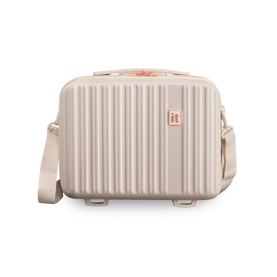 The Luxuriant vanity case has been constructed from strong and durable ABS outer shell with stylish embossed ribbed effect design. Detailed with Luxurious rose gold detailing.