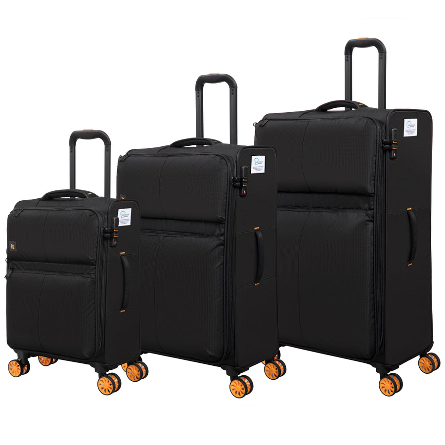 Not only does this process avoid the creation of new plastic but its manufacture has a considerably lower environmental impact than the production of virgin polyester, yet the material has the same great durability and strength you require from your luggage.