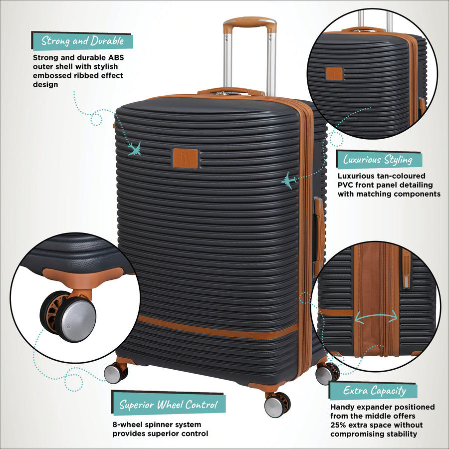 Replicating’s strong and durable ABS shell provides high-resistance protection whilst the unique embossed ribbed effect design with luxurious tan PVC detailing and matching components offers stunning looks.