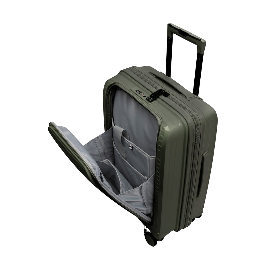 - Cabin features an innovative easy-access front pocket for storage of laptops, tablets, and documents