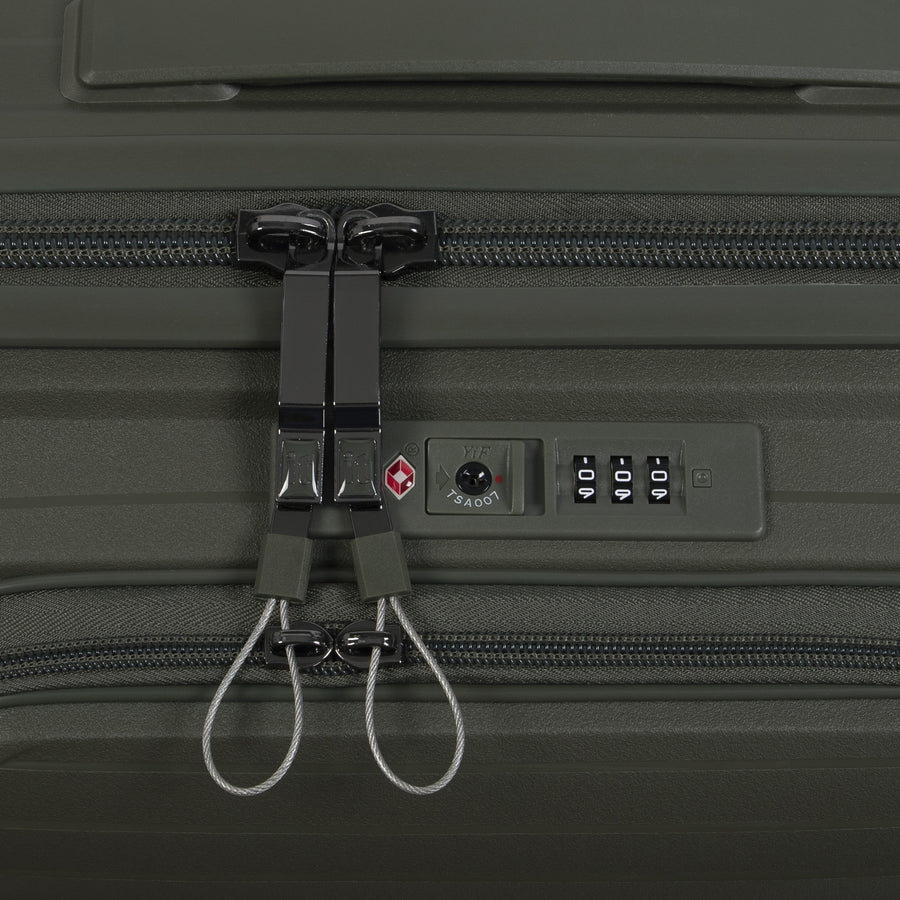 • Travel Sentry® approved combination lock for complete security