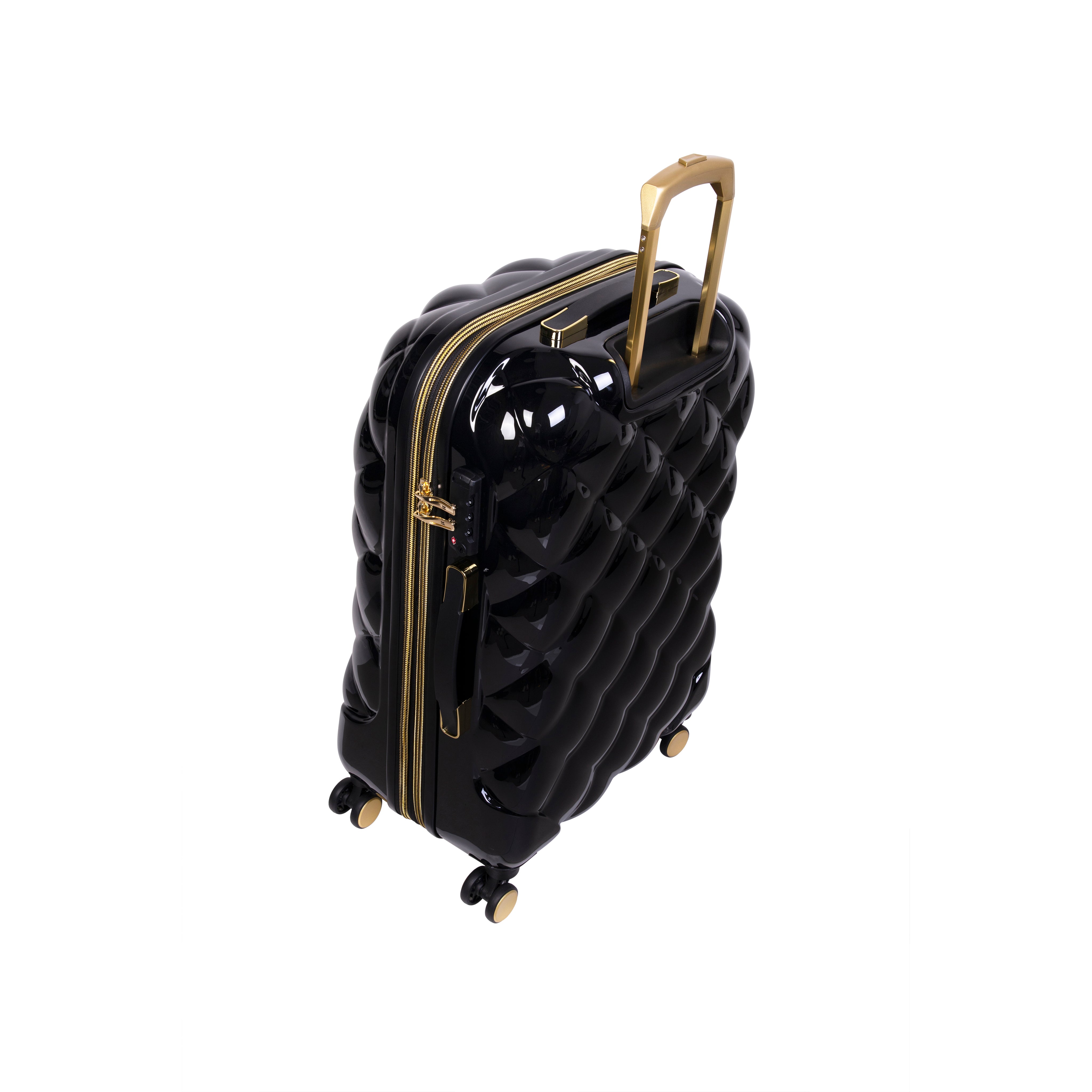 Our St. Tropez Trois range combines ultra-stylish design with the ultimate luggage protection. Turn heads with the quilted high-shine PC outer shell created for the ultimate protection and treat your clothes to luxury with the leopard print interior.