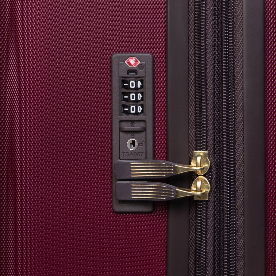 Features include a fixed Travel Sentry® approved combination lock providing complete security. Superior wheel control which has been constantly designed and tested to ensure the performance of our wheels lead the industry.