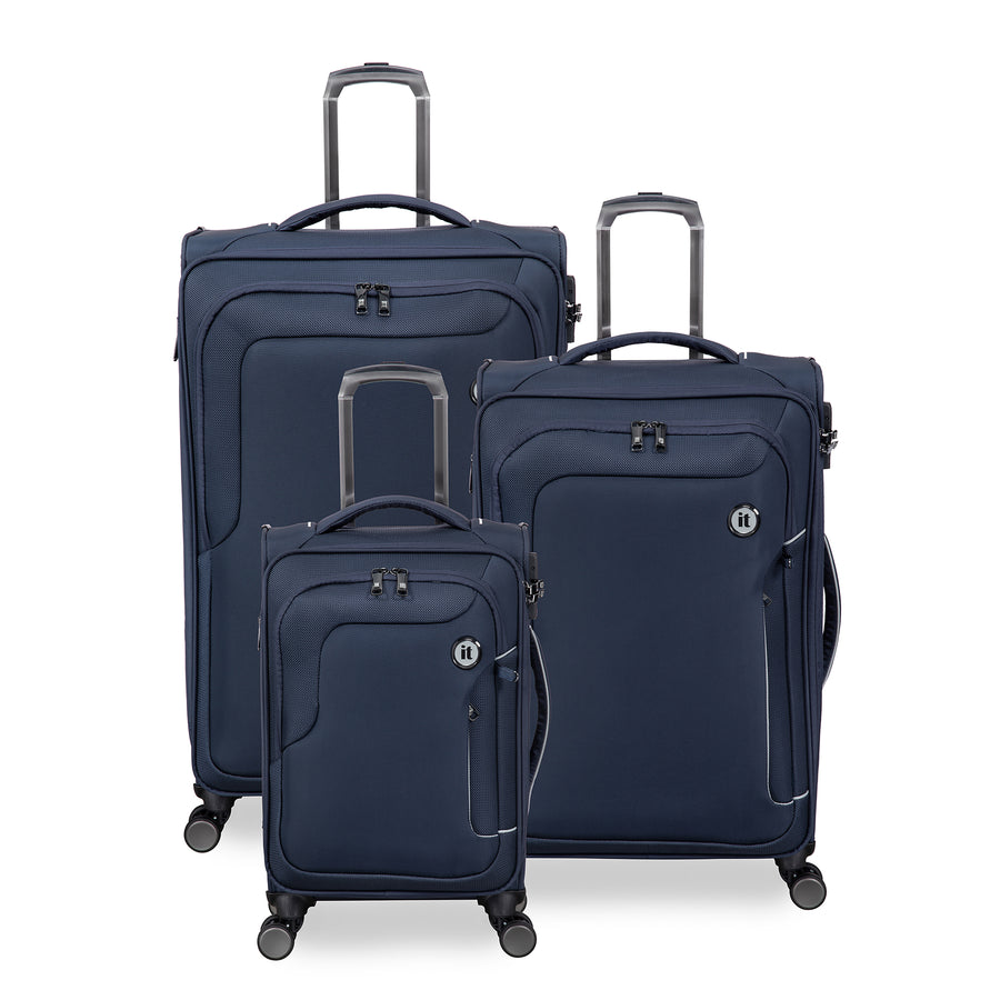 Each case in the set features two easy-access front pockets, padded grab-handles for extra comfort, Travel Sentry® approved combination locks for enhanced security, plus a front zippered semi-expander that expands from the bottom to provide up to 25% additional packing capacity while maintaining stability with the help of our patent protected hi-stability wide wheel positioning which provides better balance and resistance falling forward.