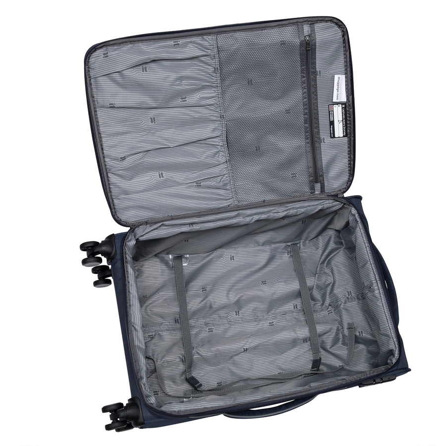 The fully-lined interior within each case features a deep main compartment with compression straps to secure all your most important belongings, with organiser pockets on the opposite side.