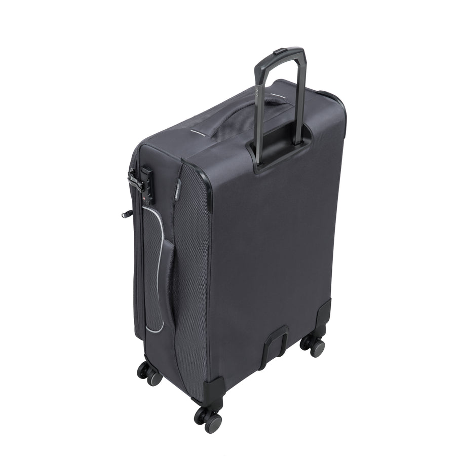The front panel of the Teleported case features innovative front pockets, which purpose is to hold contents whilst at the same time creating a stylish "cut-out" design with contrasting piping. The design features corner protectors to ensure the case stands up to rigorous travel.