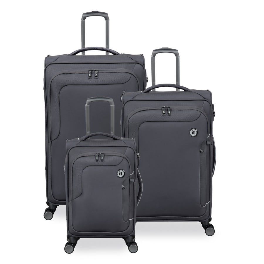 Each case in the set features two easy-access front pockets, padded grab-handles for extra comfort, Travel Sentry® approved combination locks for enhanced security, plus a front zippered semi-expander that expands from the bottom to provide up to 25% additional packing capacity while maintaining stability with the help of our patent protected hi-stability wide wheel positioning which provides better balance and resistance falling forward.
