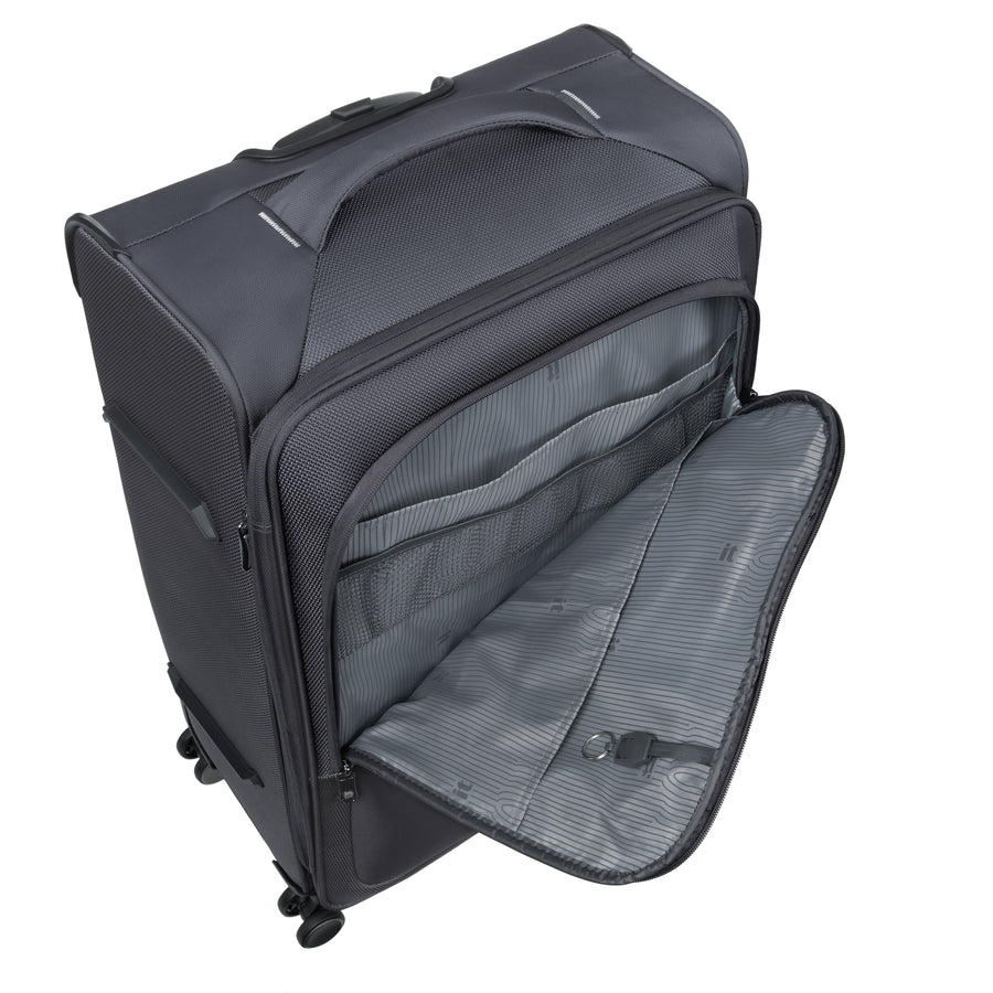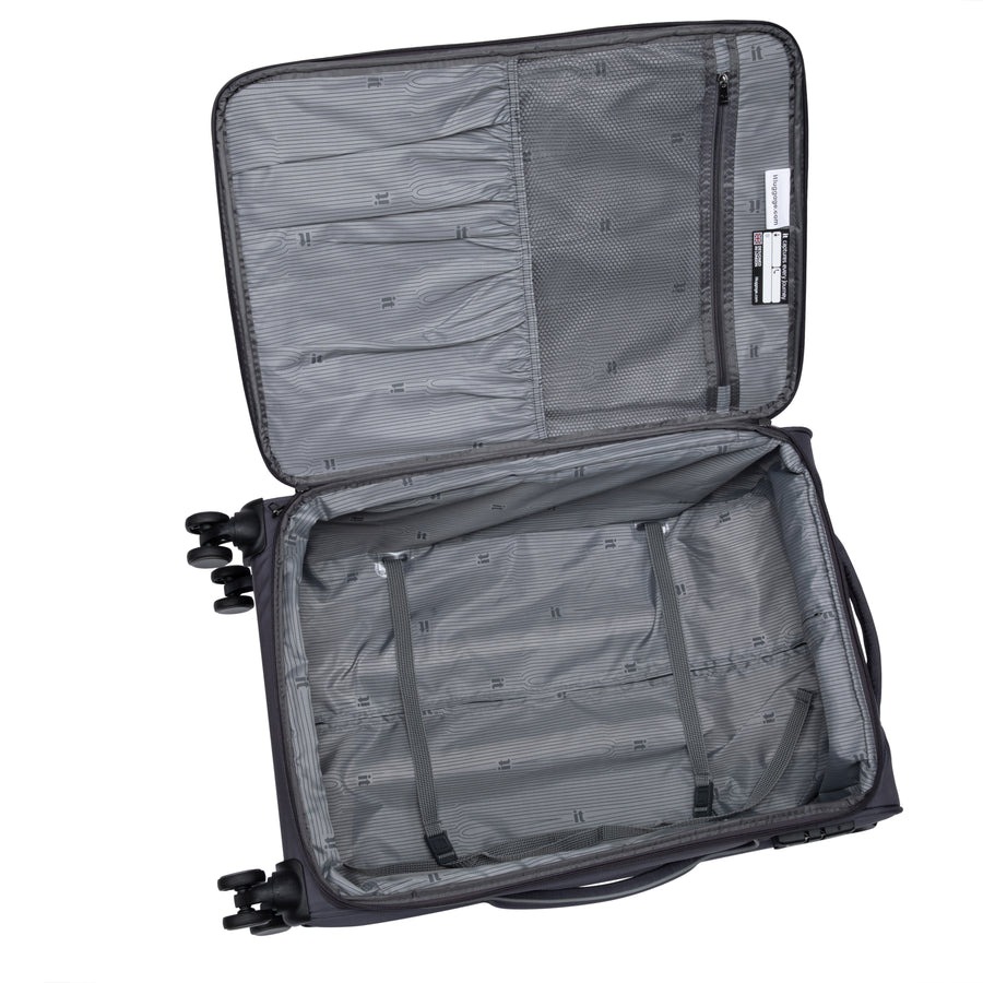 The fully-lined interior within each case features a deep main compartment with compression straps to secure all your most important belongings, with organiser pockets on the opposite side.