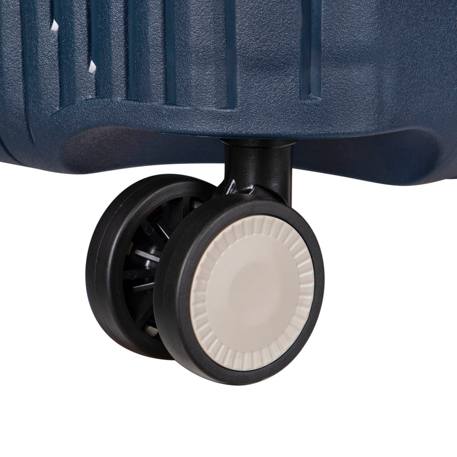 The external trolley system with a space-saving handle design creates a flatter interior base, giving you more room for organised packing across all sizes. Precision-tested wheels ensure superior control and effortless movement.