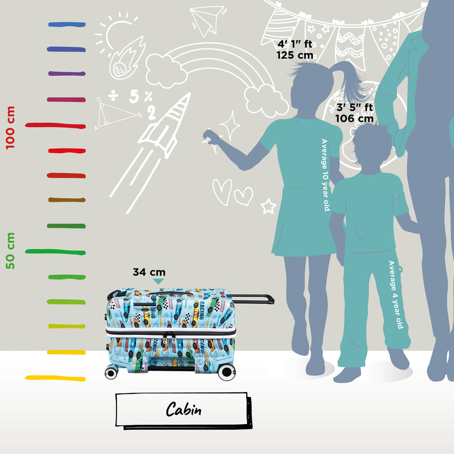 Buckle up, little speedsters... it’s time to hit the fast lane to fun! Designed for mini racers with big travel dreams, the Trunkryder race car is built for performance and play. Whether they’re zooming through the airport concourse or pulling into the pit stop for some playtime, this ride-on suitcase keeps every journey running smooth as freshly paved asphalt.